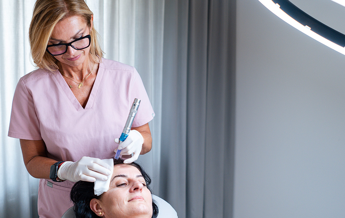 Microneedling in Esslingen verbessert Hautbild, Falten, Narben und Dehnungsstreifen. Feine Nadeln regen die Kollagenbildung an, straffen die Haut und verfeinern Poren. Die Behandlung ist vielseitig, schmerzarm und meist ohne Ausfallzeit, mehrere Sitzungen sind empfohlen